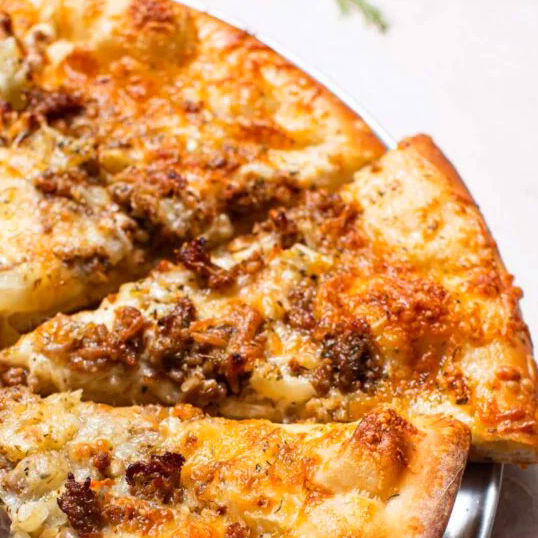Apply the pizza sauce and all of the toppings. Be careful to not over-populate the pizza, as that could prevent the crust from getting crispy.